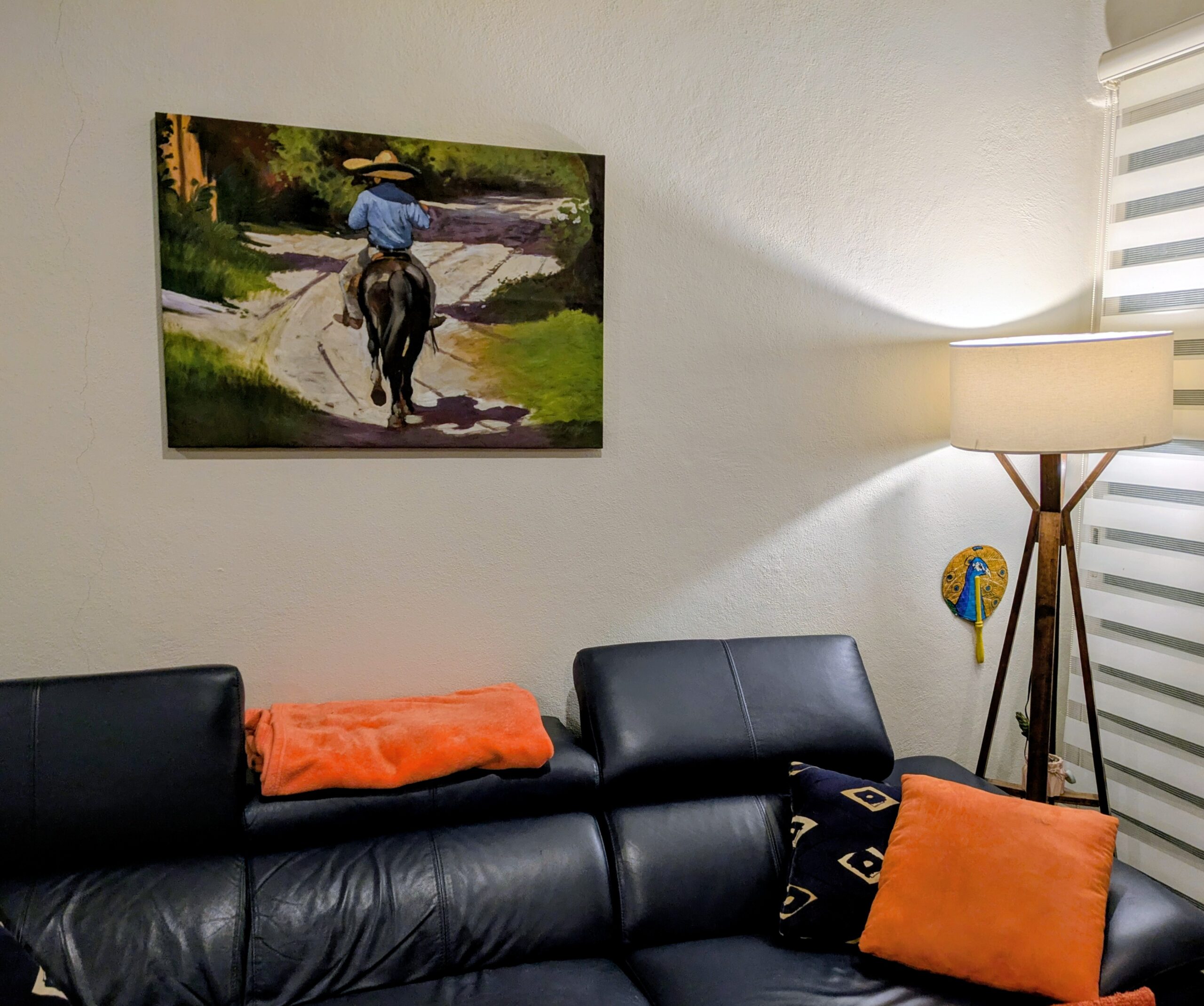 Christmas itself was simple and perfect: Joe, our cat Kitty, and a few close friends. I gave Joe our first Efren González painting, which I won at an auction. Efren is a beloved local artist, known throughout the region for capturing the spirit of Lake Chapala life. Owning one of his pieces—especially one honoring the long tradition of horseback riding here—felt like a quiet but powerful way of saying: we are home.