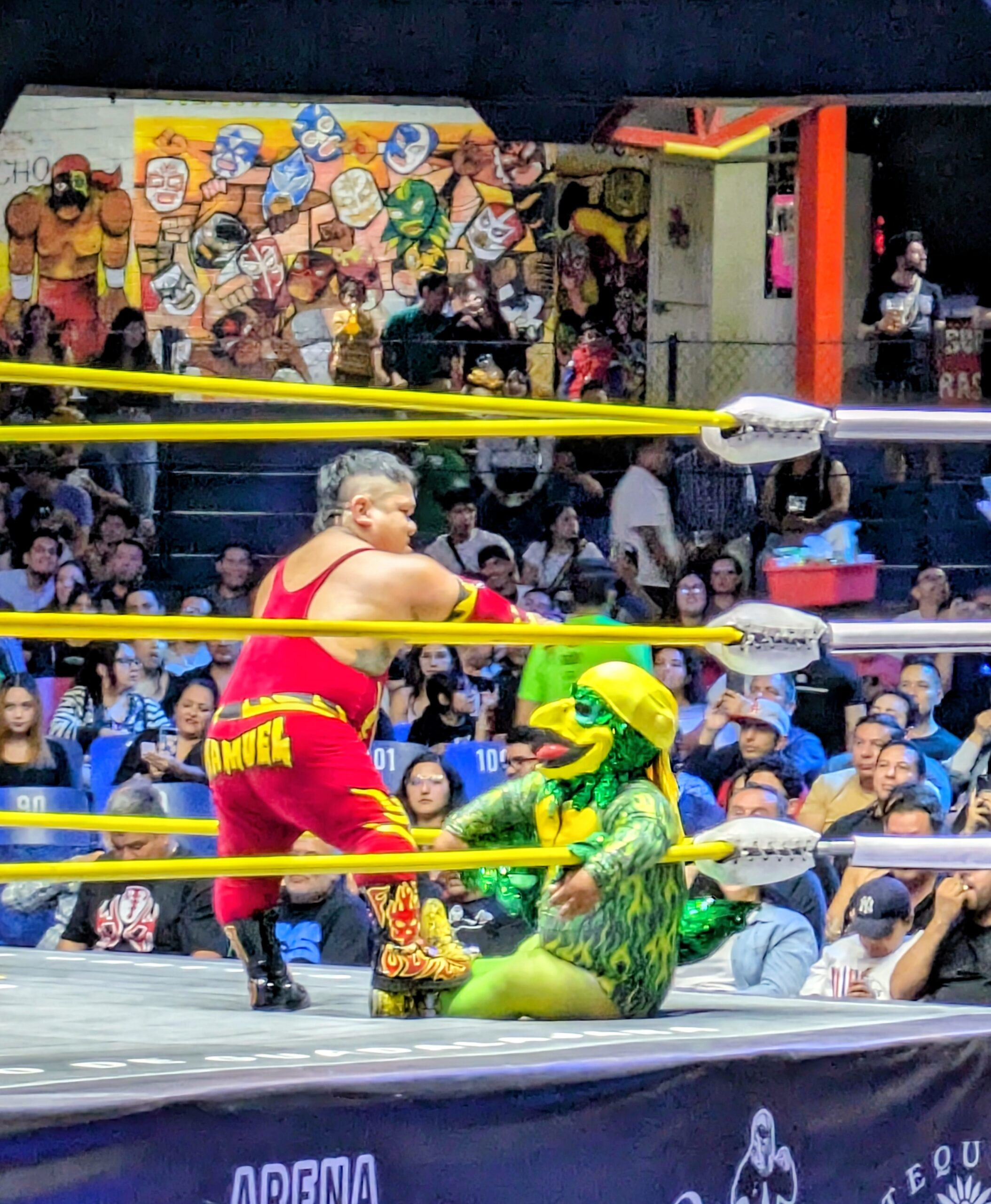 If you’ve never been to Lucha Libre, there’s no fully adequate way to describe it. It is a complete sensory overload in the best possible sense. The evening had the full range — Mini-Estrellas, the smaller masked wrestlers who bring enormous energy in a compact package, Exóticos — flamboyant, theatrical performers who lean fully into gender-bending personas, flying acrobats launching themselves off the ropes in ways that defy what bodies should be able to do, and female luchadores who were every bit as fierce and skilled as anyone in the ring. The crowd is as much a part of it as the performers — loud, passionate, theatrical. We left buzzing and already wanting to go back.