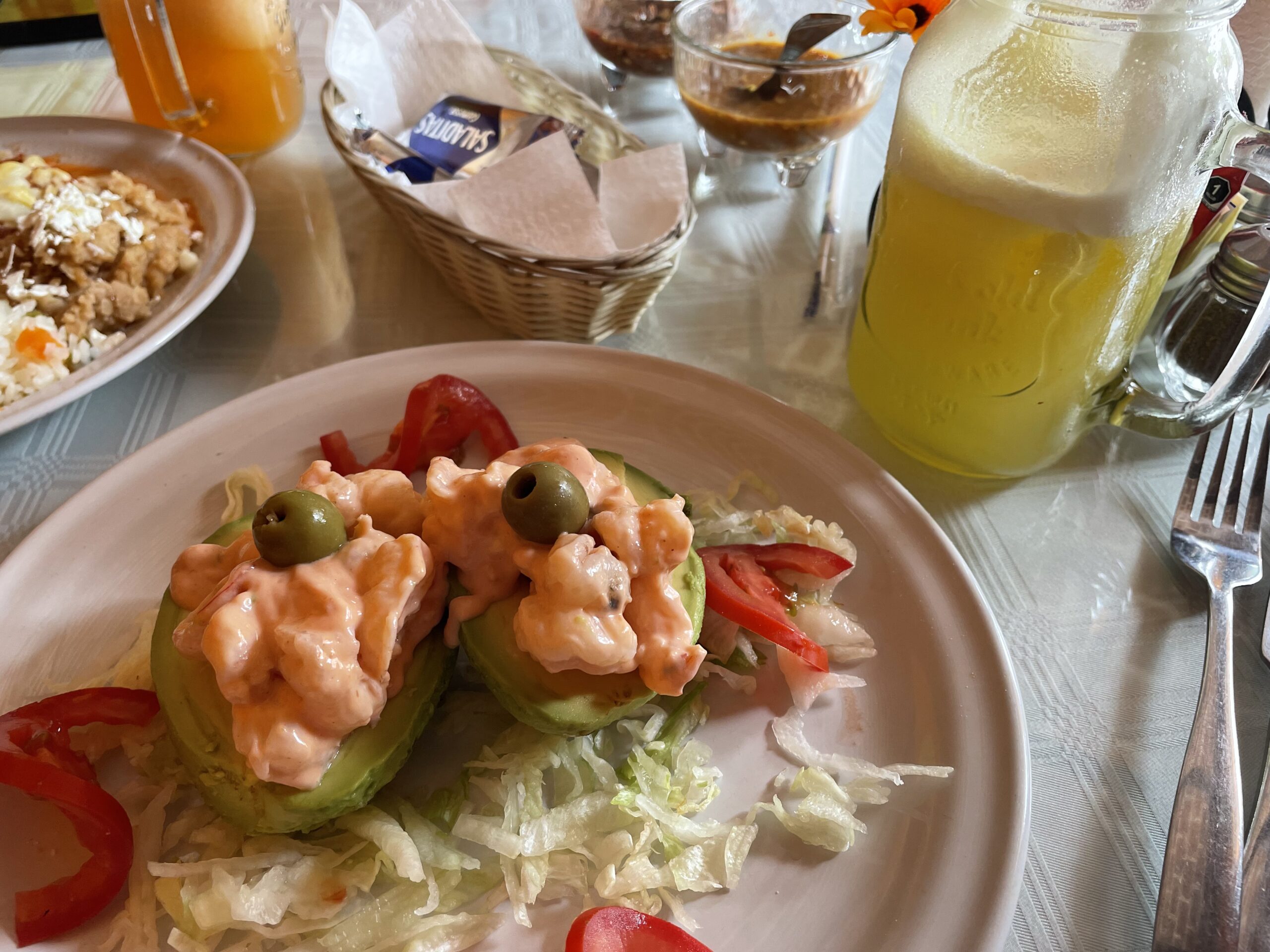 The food scene has already stolen our hearts. Just around the corner, Cocina Los Coyotes serves delicious shrimp-stuffed avocados—fresh and flavorful. At Scallions, the prawn dish paired perfectly with live music. Dining here is always lively, with music, dancing, and a sense of community woven into every experience.