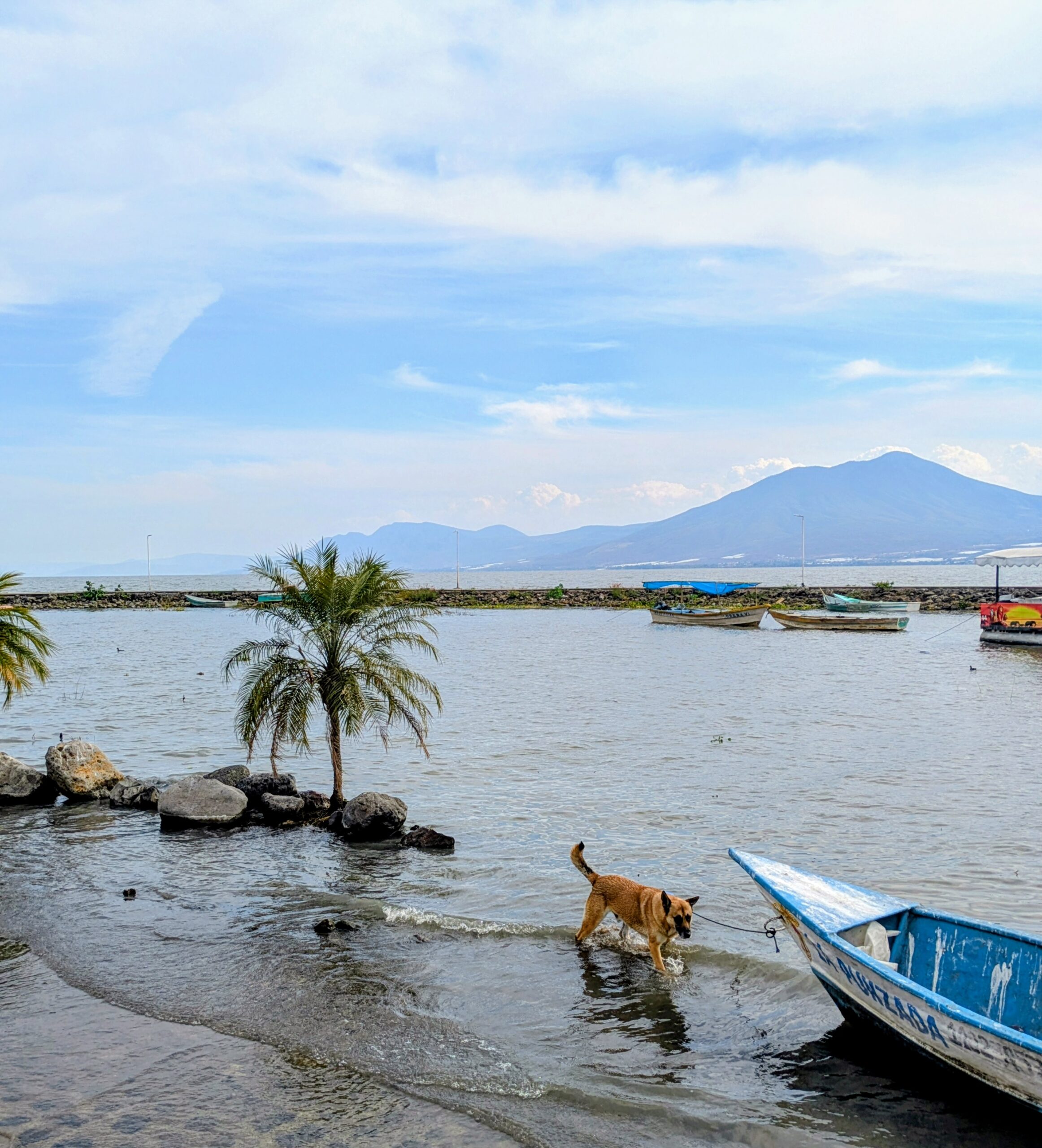 On the final day of their visit, we rented a wheelchair and went all in. Lunch at La Vita Bella in San Juan Cosalá, perched on the mountainside, delivered sweeping lake views that reminded all of us of the Mediterranean coast. From there, we headed to the Jocotepec malecón, enjoying the scenery, the lake air, and the many friendly local dogs that seem to rule the place.