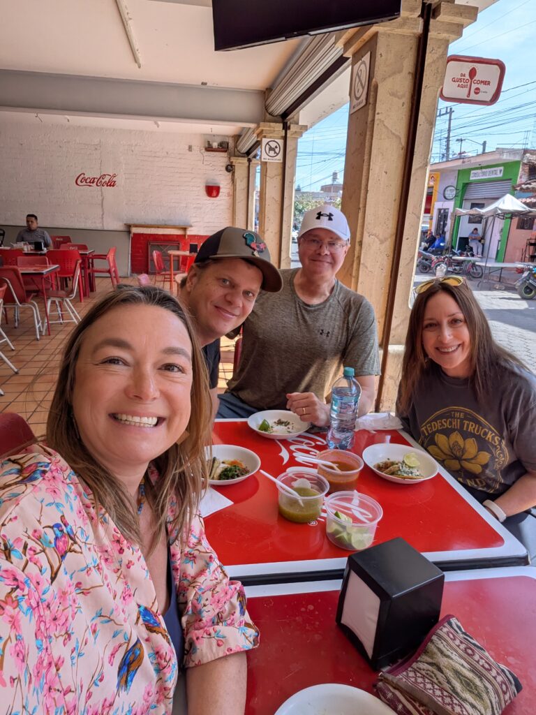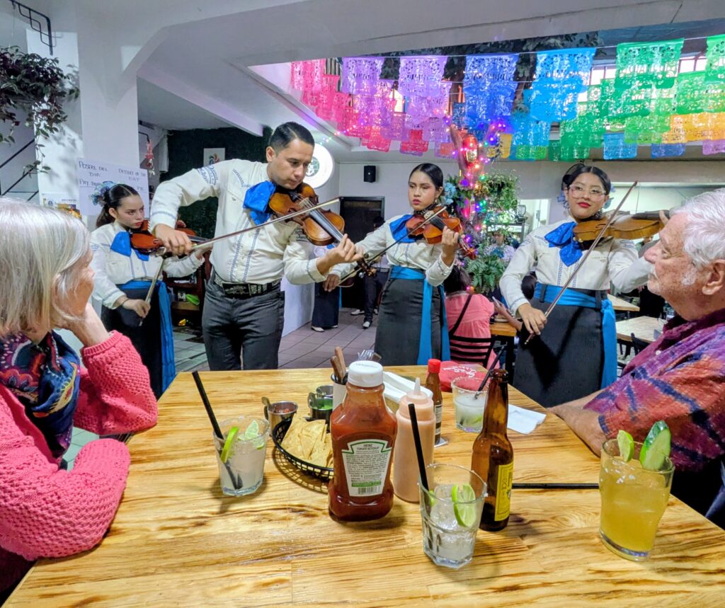 That evening brought one of our favorite Ajijic experiences: Juvenil Ajijic Mariachi playing at Donald’s food truck, a spot we’d been eager to try. With incredible food and mariachi musicians performing just feet away, it felt like a private concert. After such a challenging start, it was deeply meaningful to finally have a full day where Joe’s parents could glimpse why we love living here.