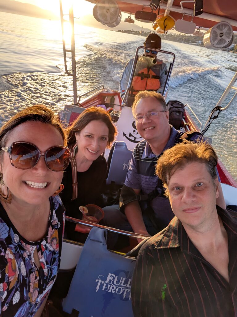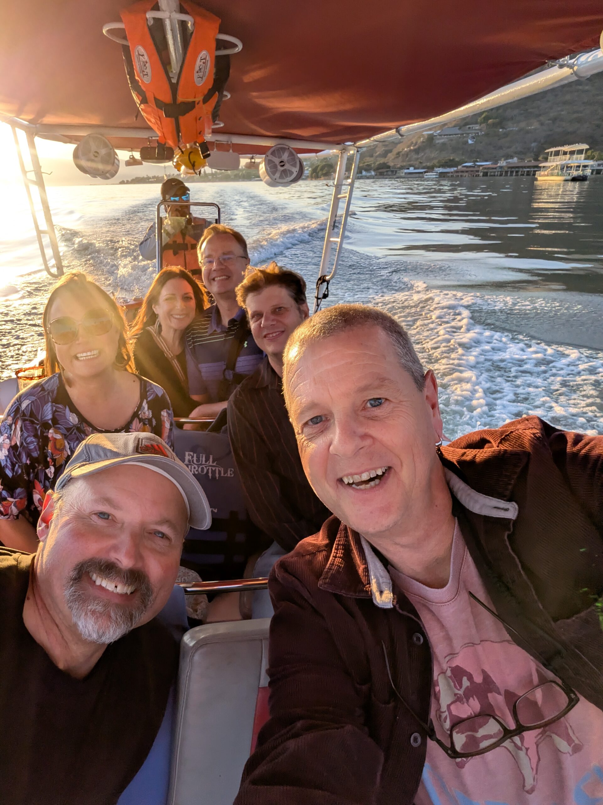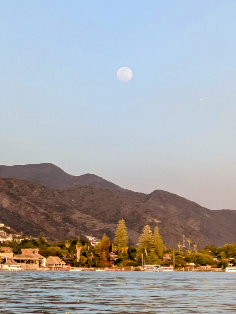 Back in Ajijic, we joined friends Larry and Jeremy for a boat tour on Lake Chapala, and it was nothing short of stunning. As we made our way back toward the malecón, the sky put on a show—first a glowing sunset, then the moon rising over the lake.
